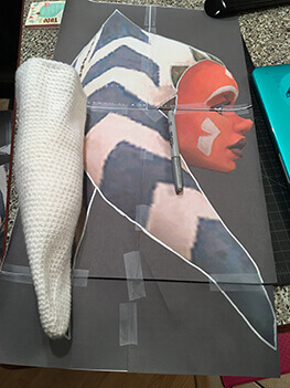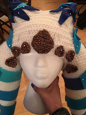 The blades were scarves with rounded ends on one side / flat on the other. Referenced lots of pinterest / crochet shapes for this one. (Pinterest Inspo)